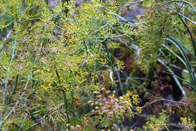Dill (Anethum graveolens) – auch Dille oder Gurkenkraut genannt – ist eine sehr alte Gewürz- und Heilpflanze und stammt ursprünglich aus Vorderasien. Aus den Samen hergestelltes Dillwasser wirkt verdauungsfördernd. Zu den Inhaltsstoffen der Pflanze gehören ätherisches Öl, Kalium, Calcium, Natrium und viele weitere Bestandteile. In der traditionellen Medizin wird Dill für Heilzwecke verwendet, unter anderem als Bestandteil von Rezepten bei Eisenmangelanämie, Bartholindrüsenentzündung, Schiefstand der großen Zehe, Blasenschwäche, verminderte Milchsekretion in der Stillperiode, lebensmittelbedingte Erkrankungen, Bauchspeicheldrüsenentzündung, Nierenbeckenentzündung und Schlafstörung.